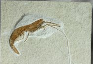 Atrimpos (Penaeus) meyeriGeological Time: Late Jurassic, Kimmeridgian Stage Size (25.4 mm = 1 inch): Shrimp fossil is 87 mm (tip of claws to tip of telson); Matrix: 75 mm by 110 mm Fossil Site: Solnhofen Lagerstatte, Germany Code: GF75 Price: Sold |