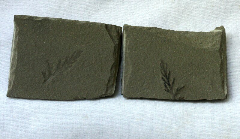Heterokonophyta indetKingdom Chromalveolata, Phylum Heterokontophyta Geological Time: Mississippian (~320 m.y.a.) Size (25.4 mm = 1 inch): Fossil is 20 mm long; Matrix: 50 mm by 35 mm and 50 mm by 40 mm pair Fossil Site: Heath Shale Formation, Bear Gulch Limestone, Fergus County, Montana Fossil Code: BGF338 Price: $85.00 - sold |