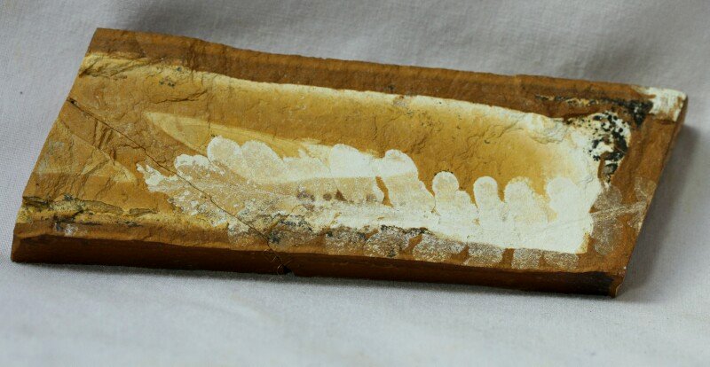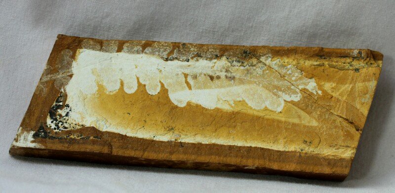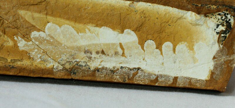 Thinnfledia talbragarensisGeological Time: Early Middle Jurassic Size (25.4 mm = 1 inch): Fossil is 70 mm by 20 mm (maximum), Matrix: 95 mm x 37 mm Fossil Site: Purlawaugh Formation, Merrygoen Ironstone, Talbragar Fish Beds, Farrs Hill, Glugong, New South Wales, Australia Code: AAF508 Price: Sold |