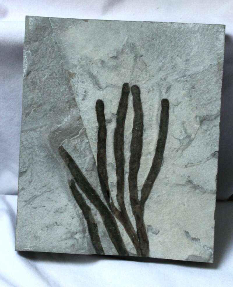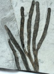 | Cf Inocaulis sp Family Plantanaceae Geological Time: Late Silurian Size (25.4 mm = 1 inch): Fossil is 130 mm long by 70 mm wide on a 150 mm by 178 mm matrix Fossil Site: Williamsville Waterlime, Bertie Group, Buffalo, New York USA Code: AW38 Price: $195.00 - sold |