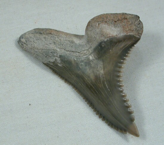 Hemipristus serra shark toothClass Chondrichthyes, Order Carcharhiniformes, Family Hemigaleidae Geological Time: Oligocene Size (25.4 mm = 1 inch): 35 mm long (diagonal), 31 mm wide at base of root Fossil Site: Summerville, South Carolina Code: SKT10 Price: $35.00 - sold