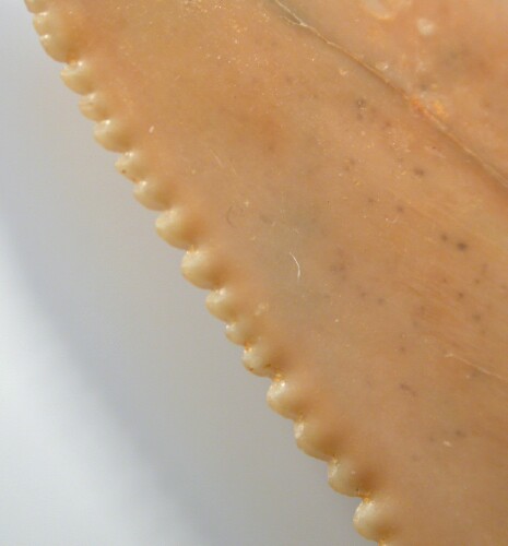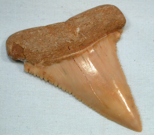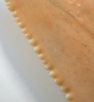 Name: Lamniformes; Lamnidae; Carcharodon carcharias Age: Pliocene (~ 3 million years old) Size (25.4 mm = 1 inch): ): 54 mm diagonal measurement; 41 mm across at base Location: Atacama Desert, Chile Code: 7545 Price: $55.00 - sold