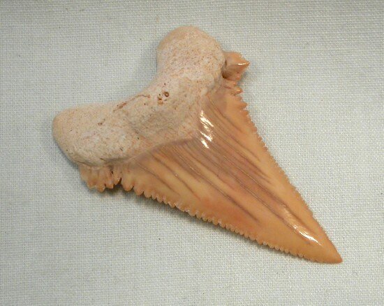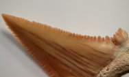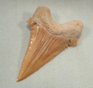Paleocarcharodon orientalisLamniformes, Lamnidae Geological Time: Paleocene to Eocene (60 to 45 million years ago) Size (25.4 mm = 1 inch): 33 mm diagonal measurement; 28 mm across at base (not including root) Fossil Site: Khouribga Plateau Morocco Code: PCT04 Price: $45.00 - sold