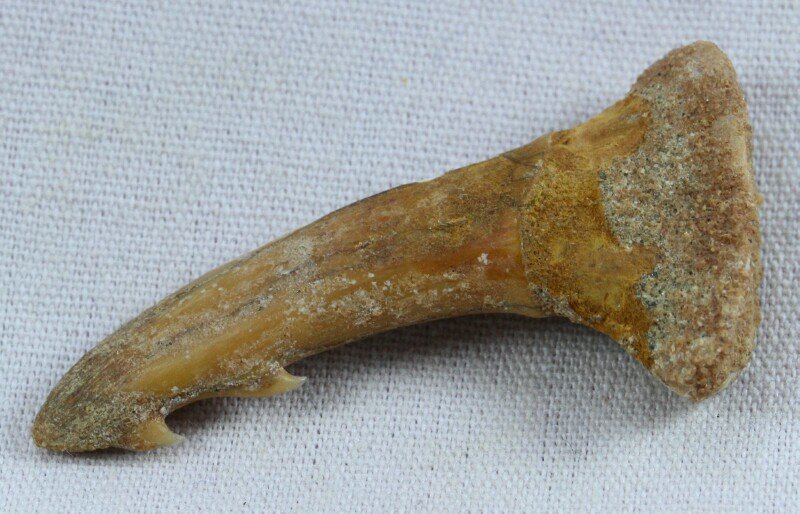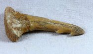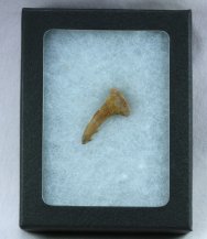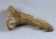 Onchopristis dunkeli praecursorOrder: Chondrichtyhes Family: Sclerorynchidae Geological Time: Lower Cretaceous, Albian Stage (112 – 97 million years ago) Size (25.4 mm = 1 inch): 32 mm outside curve length, 17 mm base width Fossil Site: Kem-Kem Beds, Tegana Formation, South of Taouz, Morocco Code: JAF01 Price: Sold |