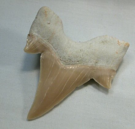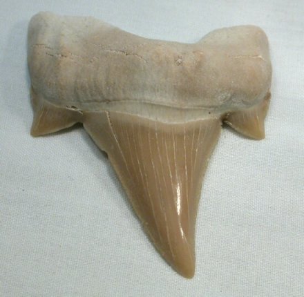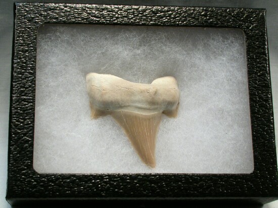 | Otodus obliquus Otodontidae Geological Time: Paleocene to Eocene (60 to 45 million years ago) Size (25.4 mm = 1 inch): 54 mm long (diagonal), 42 mm wide at widest extent of root Fossil Site: Khouribga Plateau Morocco Code: SKT02 Price: $22.50 - sold