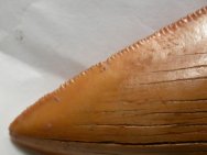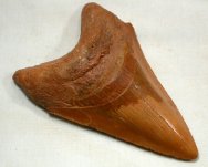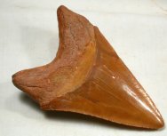 Carcharocles (Carcharodon) megalodon shark toothGeological Time: Pliocene Size (25.4mm=1 inch): 100 mm long (diagonal), 63 mm wide maximum Fossil Site: Sahara Desert, Morocco Code: MF011 Price: Sold |