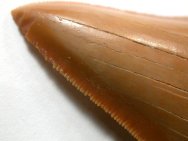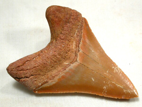 Carcharocles (Carcharodon) megalodon shark toothGeological Time: Pliocene Size (25.4mm=1 inch): 70 mm long (diagonal), 51 mm wide maximum Fossil Site: Sahara Desert, Morocco Code: MF014 Price: Sold |