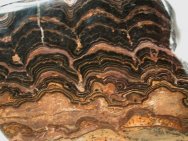 StromatolitesGeological Time: Precambrian- Lower Proterozoic (2.2 to 2.4 Billion Years Old) Size (25.4 mm = 1 inch): 83 mm by 75 mm (maximum) Fossil Site: Eastern Andes South of Cochabamba, District of Cochabamba, Bolivia, South America Code: DS1692 Price: $40.00 - sold