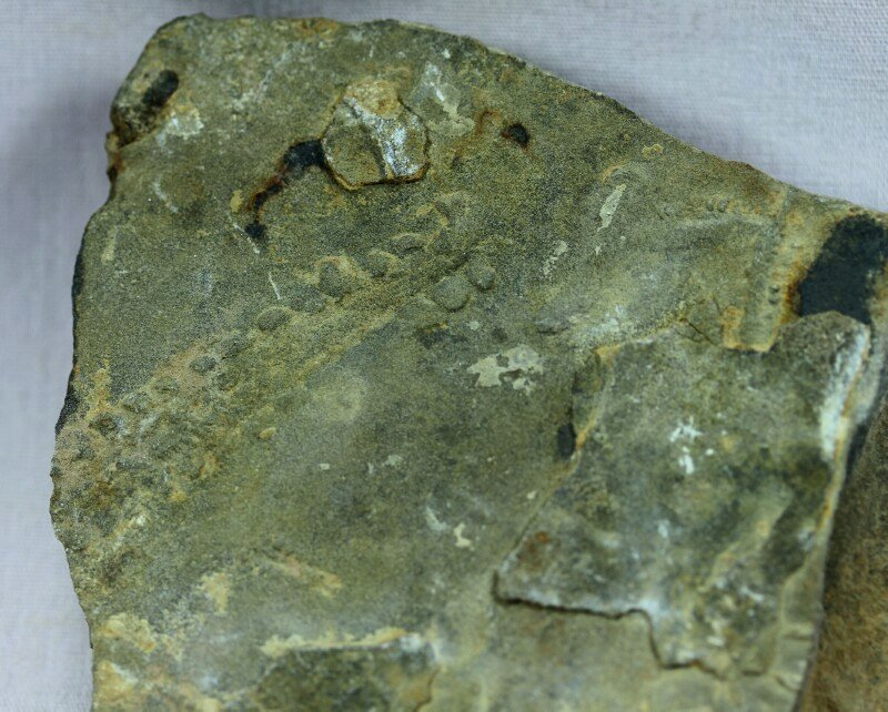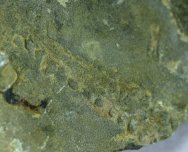 Cruziana Triolibite TrackwayGeological Time: Devonian Size: Trackway is 40 mm long, 10 mm across plus some isolated 10 mm long traces; Matrix: 75 mm by 65 mm Fossil Site: Jebel Issoumour, Alnif, Morocco Fossil Code: 15006 Price: Sold |