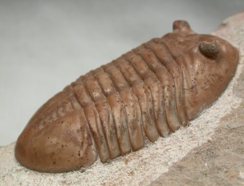| Name: Asaphus raniceps (Russian Trilobite) Age: Lower Ordovician Kunda Horizon Size: inches (25.4mm=1 inch): 70 mm long by 42 mm wide on a 95 by 155 mm matrix Location: Kunda Level deposits of the Wolchow River region near Saint Petersburg, Russia Code: RUT601 Price: $95.00 - sold |
