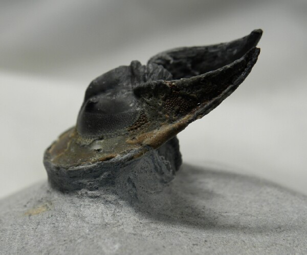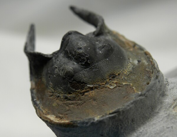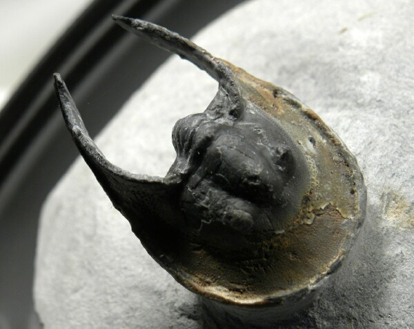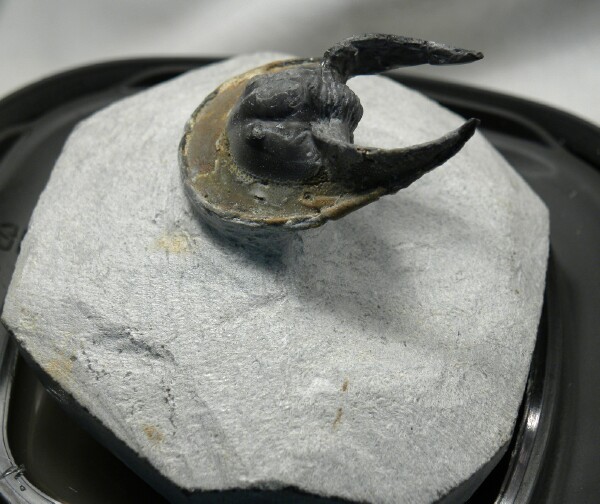 Scotoharpes spTrilobites Order Harpetida, Family Harpetidae Geological Time: Middle Devonian Size (25.4 mm = 1 inch): Trilobite is 40 mm long by 25 mm wide on a 60 by 60 mm matrix Fossil Site: Boudib , Morocco Code: MT360 Price: $285.00 |