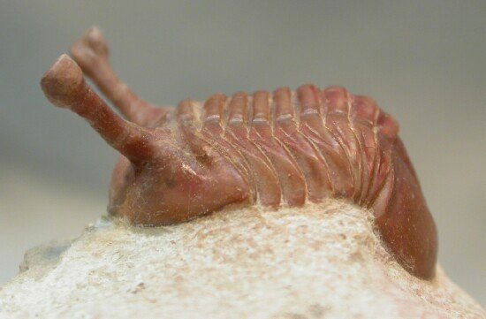 | Name: Trilobita: Asaphus kowalewskii Russian trilobite Age: Middle Ordovician, Asery Horizon Size: mm (25.4mm=1 inch): 37 mm long by 15 mm wide on a 35 mm by 55 mm matrix Location: Vilpovitsy Quarry, Wolchow River Region, St Petersburg, Russia Code: RUT641 Price: $145.00 - sold