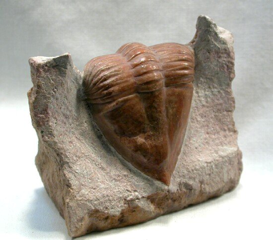 Megistaspis triangularis Russian trilobiteGeological Time : Lower Ordovician, Wolchovian Horizon Size: (25.4mm=1 inch): 78 mm long by 50 mm wide on a 65 by 32 mm matrix Fossil Site: Wolchow River Region, St Petersburg, Russia Code: RUT909 Price: $365.00 - sold |