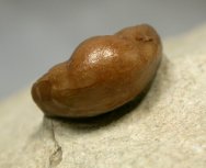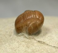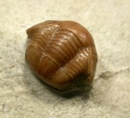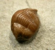 Panderia tricuetraGeological Time: Middle Ordovician Size (25.4 mm = 1 inch): 17 mm long by 9 mm wide on a 65 by 60 mm matrix Fossil Site: Wolchow River region near Saint Petersburg, Russia Code: RUT226 Price: $495.00 - sold |