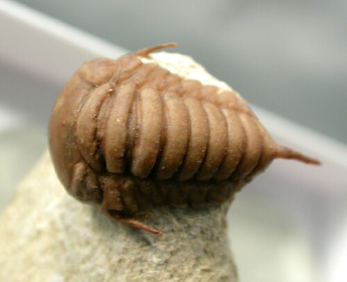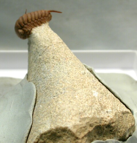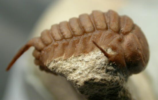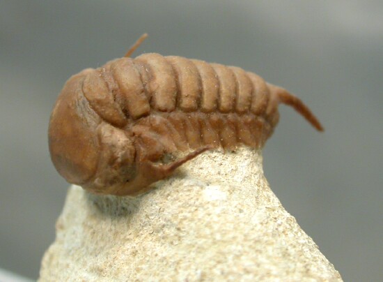Name: Remopleurides nanus (Russian Trilobite) Age: Middle Ordovician Asery Horizon Size (25.4mm=1 inch): 21 mm long (including spine) by 12 mm wide on a 63 mm by 40 mm matrix base Location: St. Petersburg region, Pulitovo Quarry, Wolchow River Region, Russia Code: RUT468 Price: $875.00 - sold |