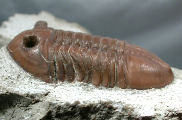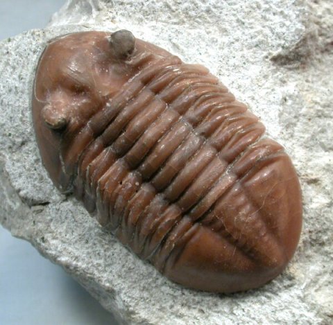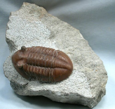 Name: Asaphus lepidurus (Russian Trilobite) Age: Lower Ordovician Wolchovian Horizon Size: inches (25.4mm=1 inch): 60 mm long by 35 mm wide on a 115 by 105 mm matrix. Location: Wolchovian Level deposits of the Wolchow River region near Saint Petersburg, Russia Code: RUT556 Price: $85.00 - sold |