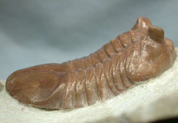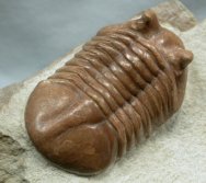 | Name: Asaphus cornutus (Russian Trilobite) Age: Middle Ordovician Size: inches (25.4mm=1 inch): 60 mm long by 37 mm wide on a 110 by 80 mm matrix. Location: Asery Level deposits of the Wolchow River region near Saint Petersburg, Russia Code: RUT616 Price: $95.00 - Sold |