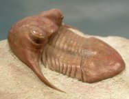 Name: Illaenus tauricornis (Russian Trilobites) Age: Middle Ordovician Asery Horizon Size: mm (25.4mm=1 inch): 61 mm long by 57 mm wide on a 125 by 130 mm matrix. Location: Wolchow River Region, St Petersburg, Russia Code: RUT734 Price: $395.00 - Sold |