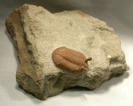 | Name: Trilobite: Asaphus kowalewskii Russian trilobites Age: Middle Ordovician, Asery Horizon Size (25.4mm=1 inch): 30 mm long by 20 mm wide on a 90 mm by 115 mm matrix Location: Vilpovitsy Quarry, Wolchow River Region, St Petersburg, Russia Code: RUT801 Price: $135.00 - Sold |