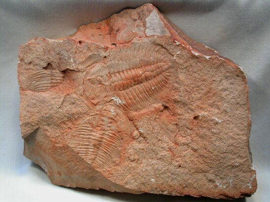 Xystridura saintsmithiTrilobite Order Redlichiida, Family Paradoxididae Geological Time: Middle Cambrian, Templetonian Stage Size (25.4 mm = 1 inch): 65 mm long by 45 mm wide and 40 mm long by 35 mm wide as well as other partials on a 150 mm by 125 mm matrix Fossil Site: Beetle Creek Formation, Gidyea Bore, Mount Isa, Queensland, Australia Fossil Code: AAF04 Price: Sold |