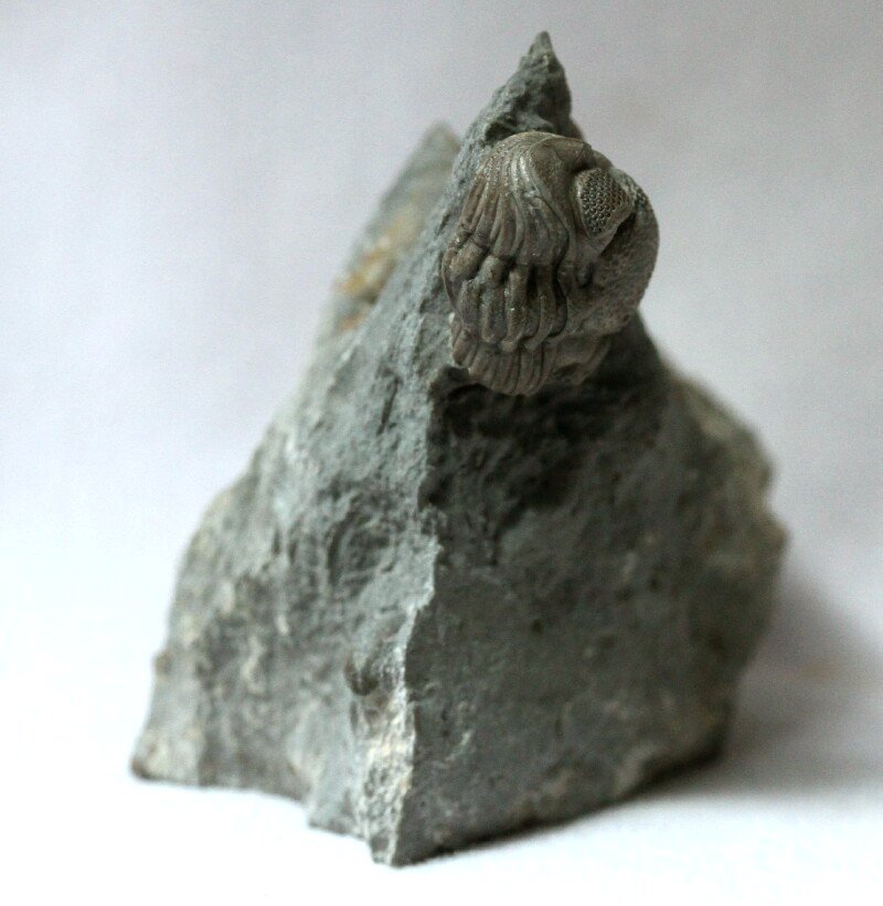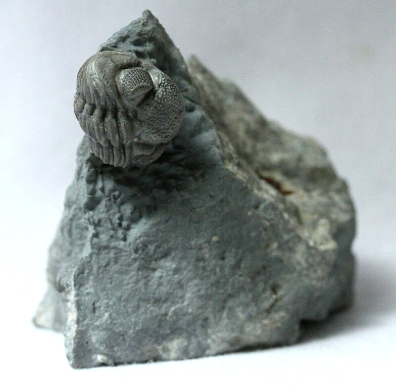 Cf Eldregeops (Phacops) ranaTrilobites Order Phacopida, Family Phacopidae Geological Time: Middle Devonian Size (25.4 mm = 1 inch): Trilobite is 20 mm long (if straight) by 14 mm wide, Matrix: 39 mm by 20 mm by 38 mm tall Fossil Site: Hamilton Group, Ellicottville, Cattaraugus County, New York Code: CPT04 Price: Sold |