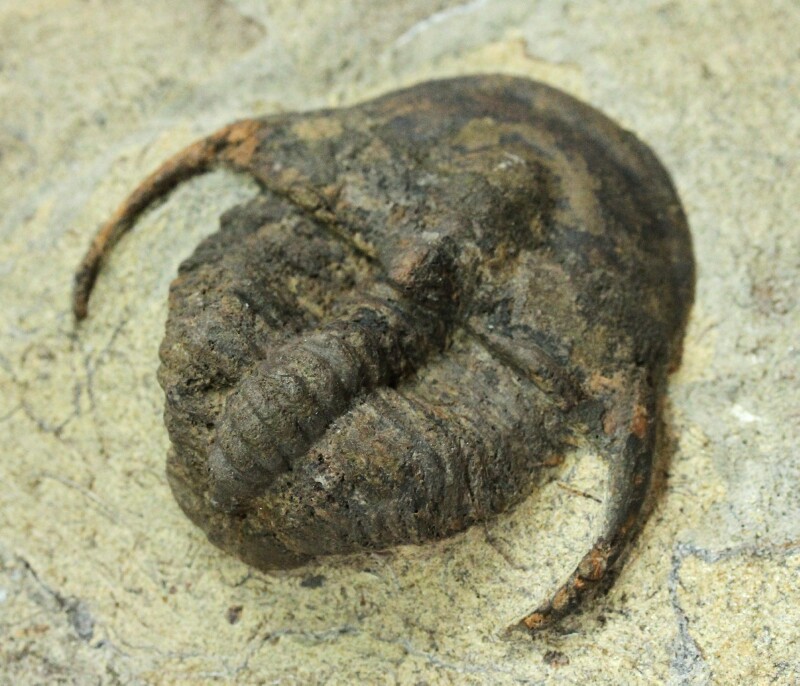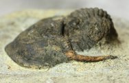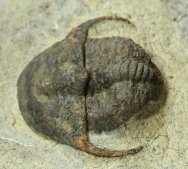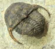 Trincleioidea indetTrilobites Order Asaphida, Superfamily Trincleioidea, Family Uncertain (Possibly Asataspididae) Geological Time: Late Cambrian to Early Ordovician Size (25.4 mm = 1 inch): Trilobite is 75 mm long (curve measure) by 60 mm wide on a 115 mm by 130 mm matrix Fossil Site: Jebel Saghrou, Morocco Code: 13160 Price: Sold |