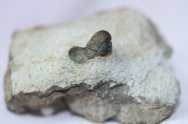 Cyclopyge spTrilobites Order Asaphida, Family Cyclopygidae Geological Time: Lower Ordovician Size: (25.4 mm = 1 inch): Trilobite is 15 mm (curve measure) by 8 mm on a 40 mm by 55 mm matrix Fossil Site: Tazanine, Morocco Code: 12102 Price: sOLD |
