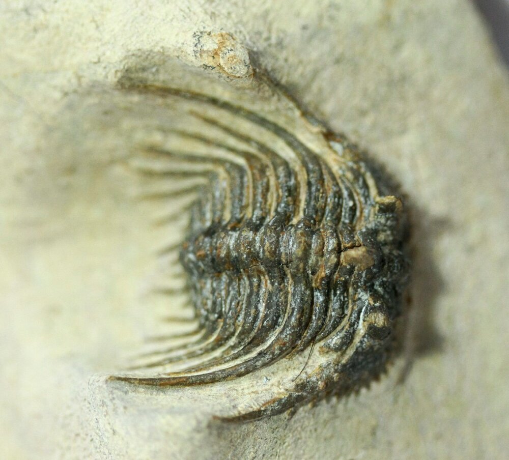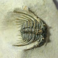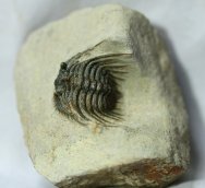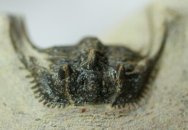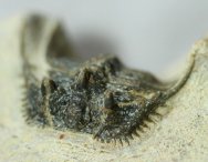 Leonaspis (or Kettneraspis) spTrilobites Order Lichida, Family Odontopleuridae Geological Time: Middle Devonian Size (25.4 mm = 1 inch): Trilobite is 30 mm long by 30 mm wide (with spines) on a 65 mm by 55 mm matrix Fossil Site: Hamar Laghdad Formation, Tafrawte, Morocco Fossil Code: 12176 Price: $225.00 |