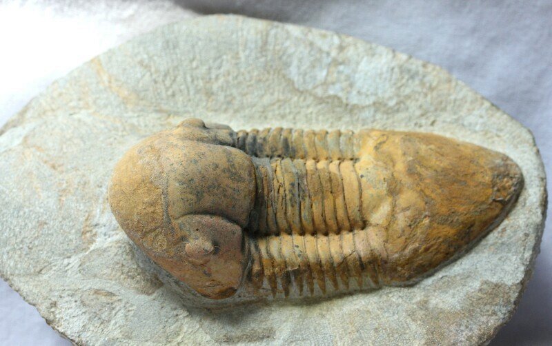 | Platillaenus spTrilobites Order Corynexochida, Family Illaenidae Geological Time: Ordovician Size (25.4 mm = 1 inch): Trilobite is 120 mm long (curve measure) by 36 mm wide on a 160 mm by 120 mm matrix Fossil Site: Taychoute, Morocco Fossil Code: 13056 Price: Sold |