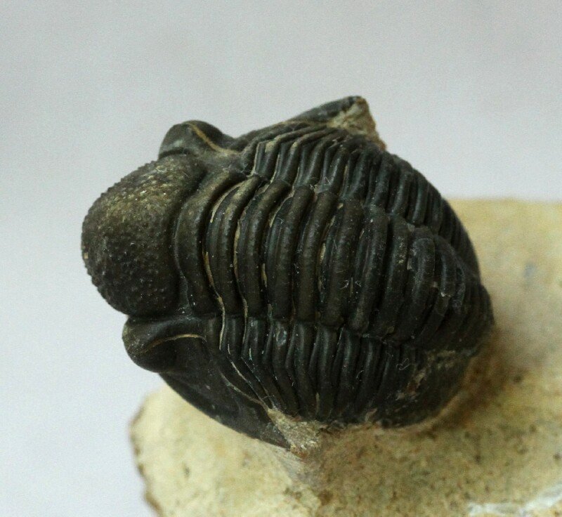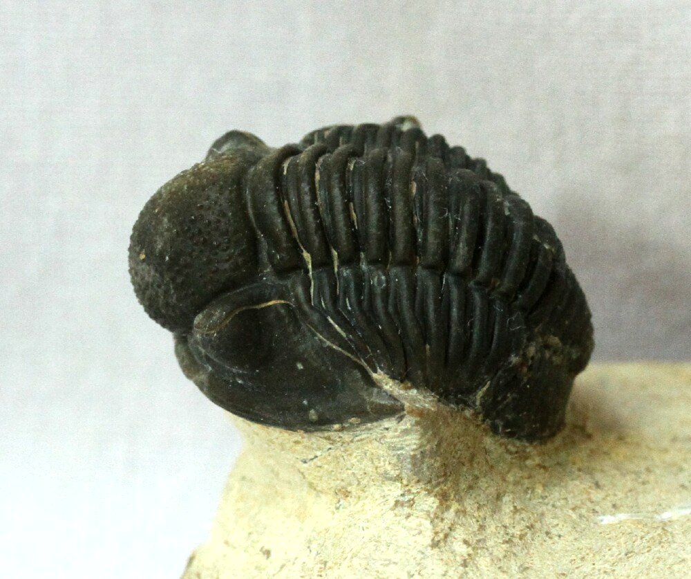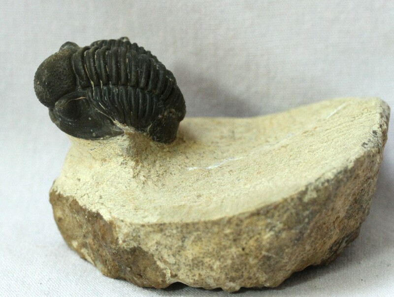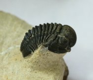 Gerastos tuberculatus morocensisTrilobites Order Proetida, Family Proetidae Geological Time: Devonian Size: Trilobite is 35 mm long (curve measure) by 20 mm wide on a 35 by 45 mm matrix. Fossil Site: Timrhanrhart Formation, Foum Ziguid , Morocco Fossil Code: 14066 Price: $50.00 |