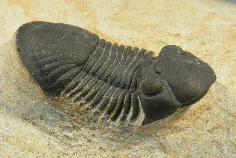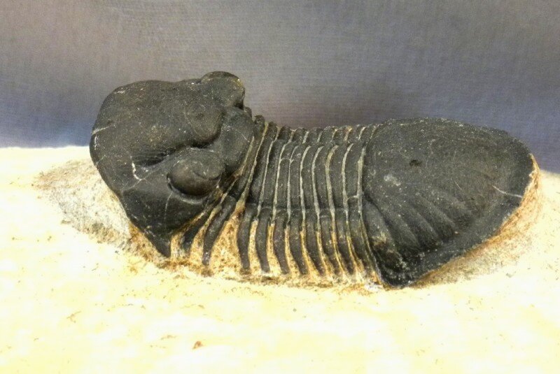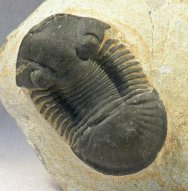 Paralejurus “Type B”Trilobite Order Corynexochida, Family Styginidae Geological Time: Devonian Size: (25.4 mm = 1 inch): Trilobites are 42 mm long (curve measure) by 28 mm wide and 40 mm long (curve measure) by 17 mm wide on a 150 mm by 75 mm matrix Fossil Site: Jebel Issoumour, Alnif, Morocco Code: 13139 Price: $275.00 |