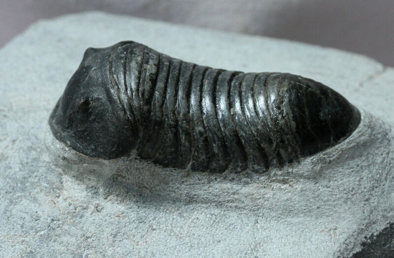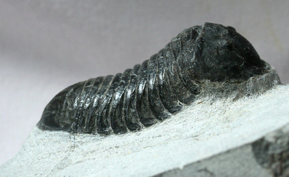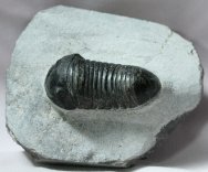 Parahomalonotus planusTrilobites Order Phacopida, Family Homalonatidae Geological Time: Lower Devonian, Pragian Stage Size (25.4 mm = 1 inch): Trilobite is 60 mm long (curve measure) by 25 mm wide on a 90 by 70 mm matrix. Fossil Site: Oued Ghris, Morocco Fossil Code: 14093 Price: Sold |