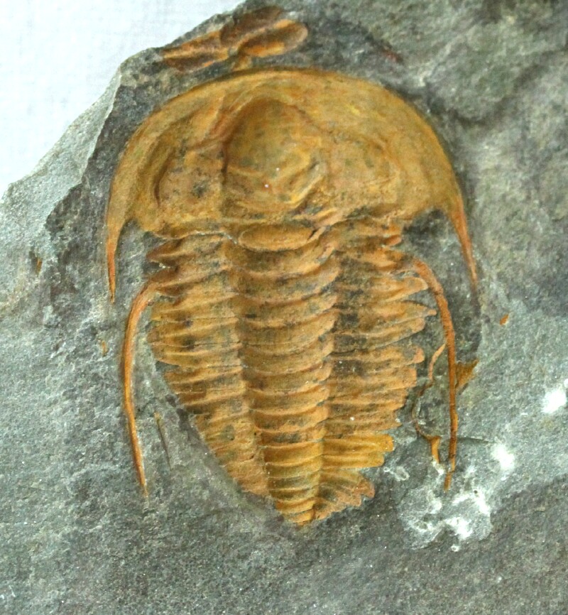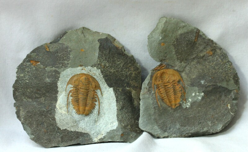 Hamatolenus vincentiTrilobites Order Ptychopariida, Family Ellipsocephalidae Geological Time: Lower Middle Cambrian Size (25.4 mm = 1 inch): Trilobite is38 mm long , 34 mm across (with spines). Matrix: 120 mm by 110 mm and 90 mm by 115 mm pair Fossil Site: Tinejdad, Morocco Code: 13119 Price: Sold |