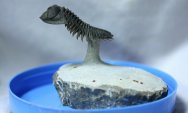 Coltraenia oufatensisTrilobite Order Phacopida, Superfamily Acastoidea Geological Time: Middle Devonian Size (25.4 mm = 1 inch): Trilobite is 55 mm long (curve measure) by 35 mm wide on a 60 by 85 mm matrix Fossil Site: Oufaten, Morocco Code: 13018 Price: Sold |