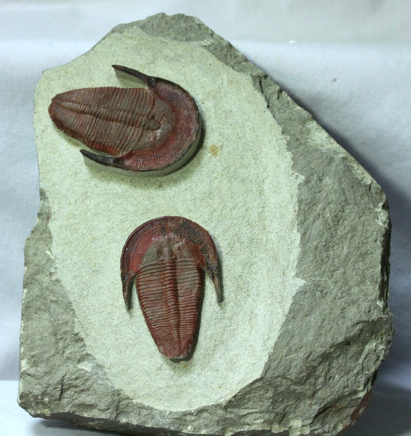 Harpides spTrilobites Order Harpetida, Family Harpididae Geological Time: Lower Ordovician Size (25.4 mm = 1 inch): Trilobites are 67 mm long by 46 mm wide and 62 mm long by 40 mm wide on a 190 mm by 155 mm matrix Fossil Site: Fezouata Formation, Zagora, Morocco Code: 13073 Price: Sold