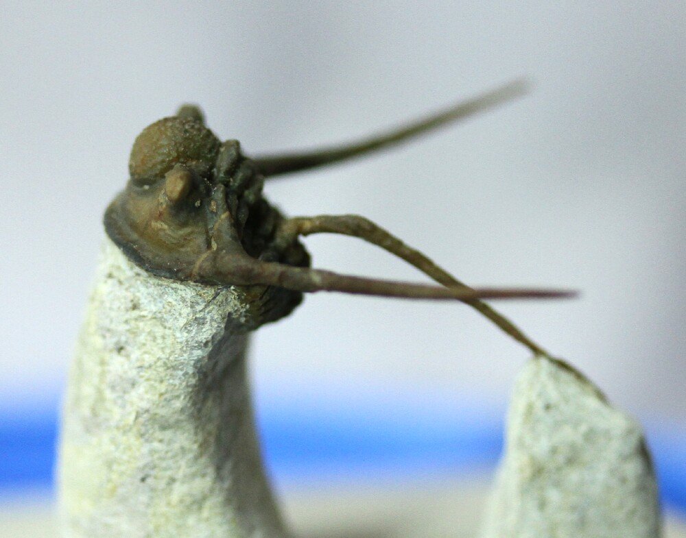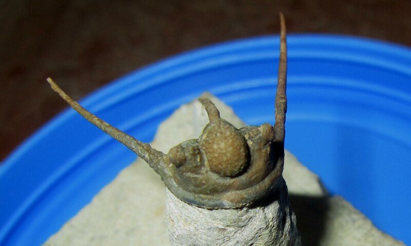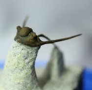 Cyphaspis eberhardieiTrilobites Order Proetida, Family Otarionidae Geological Time: Devonian, Upper Emsian Stage Size (25.4 mm = 1 inch): Trilobite is 27 mm long by 24 mm wide (counting spines) on a 55 by 45 mm matrix Fossil Site: Foum Ziguid , Morocco Fossil Code: 14009 Price: Sold |