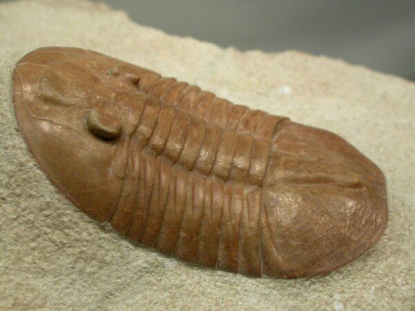 | Name: Ptychopyge truncatus Geologic Time: Lower Ordovician, Wolchovian Horizon Size: (25.4mm=1 inch): 60 mm long by 37 mm wide on a 150 by 110 mm matrix Fossil Site: Wolchow River Region, St Petersburg, Russia Fossil Code: RUT916 Price: $325.00 - sold