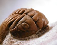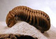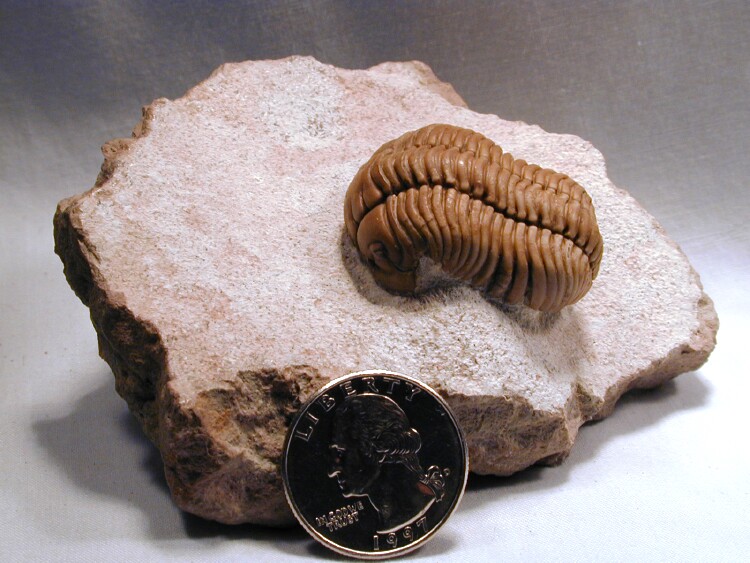 Pliomera fisheriTrilobite Order Phacopida, Family Cheiruridae Geological Time: Middle Ordovician Size (25.4 mm = 1 inch): Trilobite is 58 mm long (measured along the curve) and 28 mm wide at the widest extent of the cephalon on 76 by 102 mm matrix Fossil Site: Wolhovian Level, St. Petersburg region, Wolchow river, Russia Code: RUT360 Price: Sold