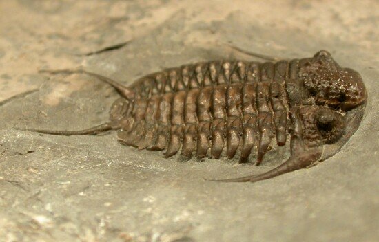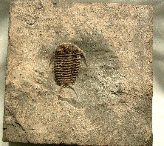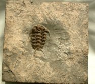 Ceraurus cf plattinensisTrilobite Order Phacopida, Family Cheiruridae Geological Time: Middle Ordovician Size (25.4 mm = 1 inch): Trilobite: 53 mm long , 35 mm across. Matrix: 138 mm by 130 mm Fossil Site: Bobcaygeon Formation, Ontario Canada Code: JAT009 Price: $935.00 |