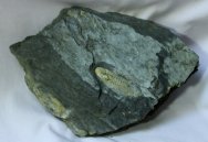 Eodamanitina destobesiTrilobites Order Phacopida, Family Dalmanitidae Geological Time: Ordovician, Llandeilian Stage (~465 million years ago) Size (25.4 mm = 1 inch): Trilobite is 73 mm long (with tailspine) by 20 mm wide on a 210 mm by 140 matrix. Fossil Site: Valongo, Portugal Code: DLF05 Price: Sold |