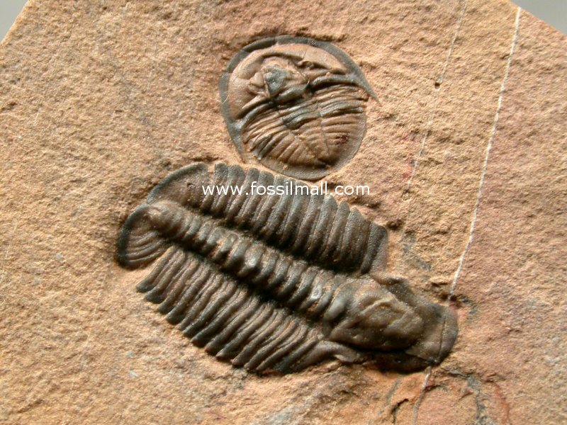 Cedaria minorTrilobites Order Ptychopariida, Family Cedariidae Modocia weeksensisTrilobites Order Ptychopariida, Family Marumiidae Geological Time: Upper Middle Cambrian Size (25.4mm=1 inch): Modocia: 21 mm long by 12 mm across, Cedaria: 10 mm long by 9 mm wide on a 43 mm by 45 mm matrix Fossil Site: House Range, Weeks Formation, Millard County, Utah Fossil Code: UB07 Price: Sold |