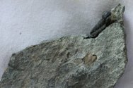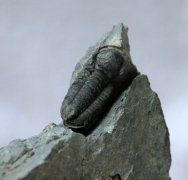 Gerastos catervusTrilobites Order Proetida, Family Proetidae Geological Time: Upper Middle Cambrian Size (25.4 mm = 1 inch): Trilobite is 17 mm long (curve measure) by 9 mm wide on a 70 mm by 55 mm matrix. Fossil Site: Jemelle Formation, Vireux, France Fossil Code: DLF23 Price: $95.00 |