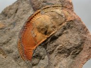 | Name: Parkesolithus gradyi (Trilobites) Order Asaphida; Family Trinucleidae Geological Time: Ordovician, Upper Eastonian Stage (~455 Million years ago) Size (25.4mm=1 inch): 12 mm long by 29 mm wide on a 57 mm by 53 mm matrix Location: New Durran Property, Gunningbland, New South Wales, Ausralia Code: AAF37 Price: $75.00 - sold |