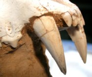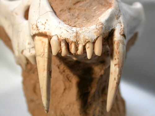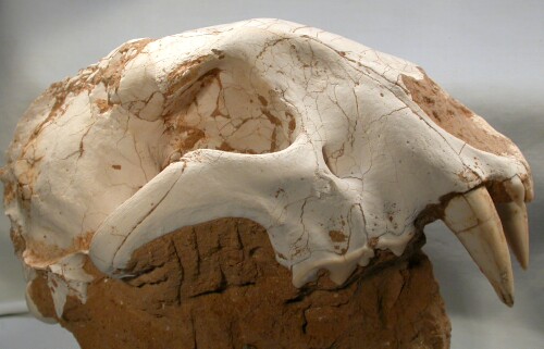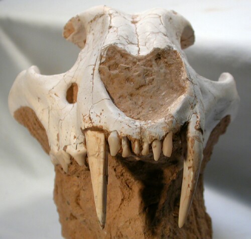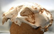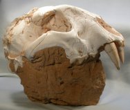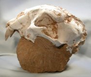 Metailurus majorCarnivora, Felidae, Machairodontinae, Metailurini Geological Time: Late Miocene Size (25.4mm=1 inch): Skull: 190 mm long, 100 mm high, 125 mm across. With canines 50 mm in length (curve measurement) Matrix: 110 mm long, 75 mm across, 75 mm tall Fossil Site: Guanghe Formation , Xihe, Gansu Province, China Code: CF016 Price: $5495.00 |