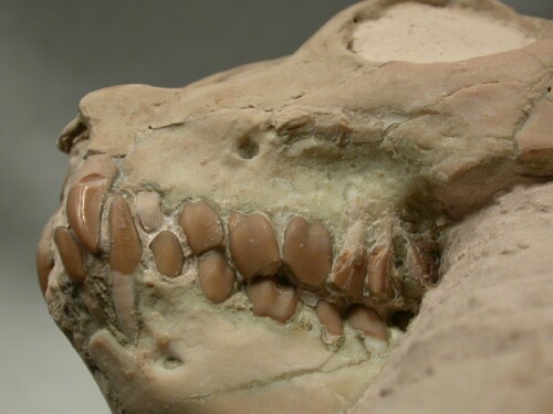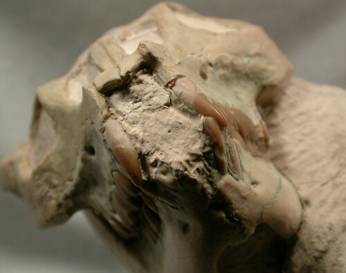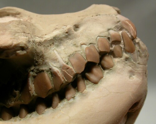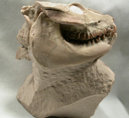 | Name: Leptauchenia nitida Age: Upper Oligocene Size (25.4mm=1 inch): 65 mm tall, 70 mm wide, 85 mm in length (Skull only)Matrix 70 mm by 60 mm by 65 mm high Location: White River (Brule) Formation, South Dakota Code: FH011 Price: $550.00 - Sold |