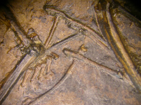 This is a fine example of a small species of bat from the oil shale