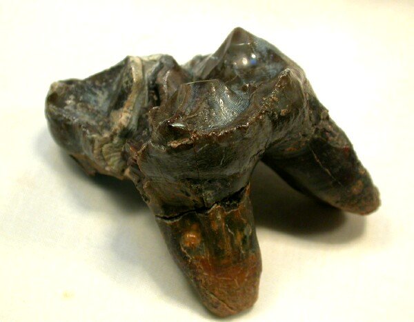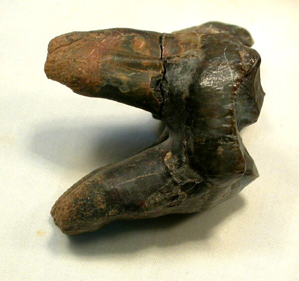 Brontotheriidae indet.Class Mammalia, Order Perissodactyla Geologic Time: Eocene Size (25.4 mm = 1 inch): 47 mm in length X 35 mm across X 42 mm tall (including roots) Fossil Site: Bridger Formation, Sweetwater County, Wyoming Fossil Code: VE23 Price: Sold |