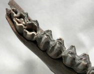 Cervidae indet.Class Mammalia, Order Artiodactyla, Suborder Ruminantia, Family Cervidae Geological Time: Late Pliocene (~2 million years ago) Size (25.4 mm = 1 inch): Fossil is 150 mm long by up to 52 mm tall Fossil Site: Liujiang, Guangxi Province, China Fossil Code: TF319 Price: $125.00 |