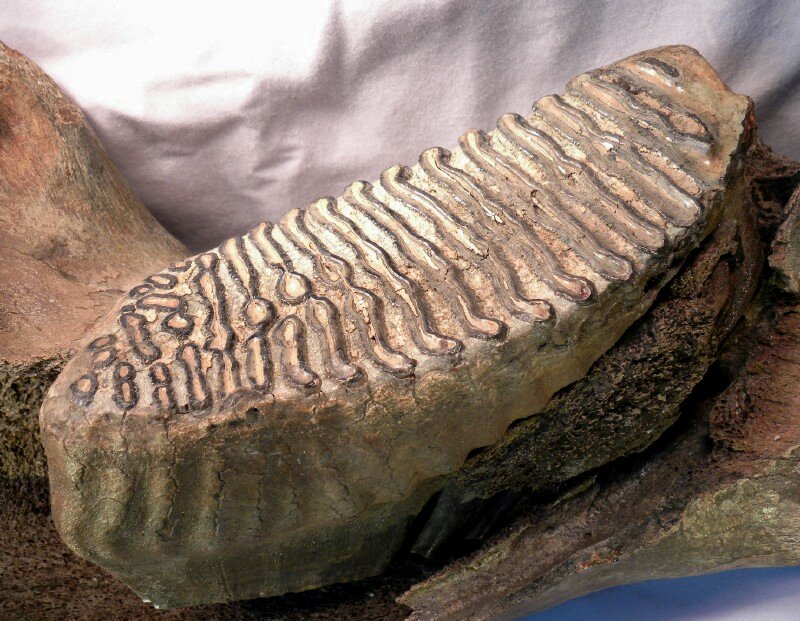 with only one tooth active in the jaw at any one time. A baby mammoth’s