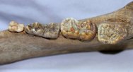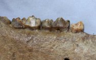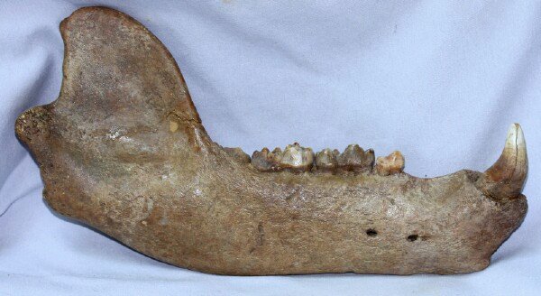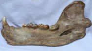 Ursus speleausClass Mammalia, Order Carnivora, Family Ursidae Geological Time: Early Pleistocene Size (25.4 mm = 1 inch): Fossil is 255 mm long by 136 mm tall at the jaw hinge Fossil Site: Ural Mountains, Russia Fossil Code: CBJ02 Price: Sold |